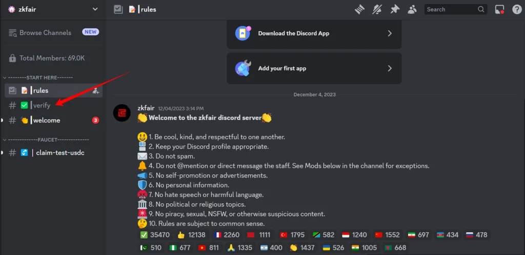 1단계: Discord를 열고 ZKFair 커뮤니티에 가입하세요( https://discord.com/invite/7JUnrh9GsF )