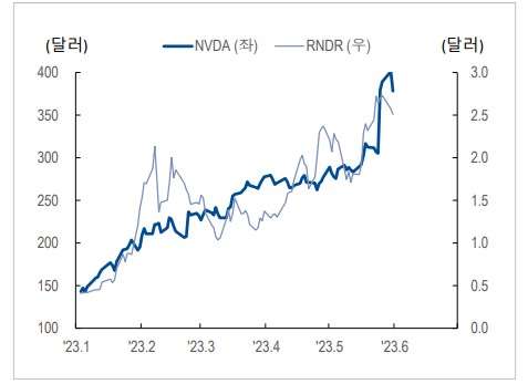 한편, 홍 연구원은 “RNDR(Render Token)의 경우 연초 이후 이미 가파른 상승을 보였으며 가격 변동성이 높을 수 있다는 점 인지할 필요도 있다”며 “애플 WWDC 행사에서 새로운 XR 기기가 등장할 것으로 기대되며 RNDR(Render Token)의 가격에도 긍정적인 영향을 미치고 있으나, 행사 이후 기대감 조정으로 가격 하락이 가능하다”며 투자 위험 요소 역시 인지할 필요가 있다고 덧붙였습니다.