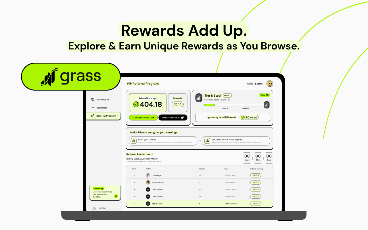 Grass는 사용자가 소유하고 운영하는 네트워크입니다. 노드를 실행하고 Grass 포인트를 얻으면 네트워크 운영에 도움을 줌으로써 네트워크 자체에 대한 지분을 얻게 됩니다. 사용자에게 인센티브를 제공하면 약간의 인센티브만 제공하는 다른 네트워크와 달리 Grass는 공평하고 집단적인 프로젝트로 설계되었습니다. 이는 AI가 성장함에 따라 Bill Gates와 Elon Musk뿐만 아니라 우리 모두가 혜택을 받는다는 것을 의미합니다.