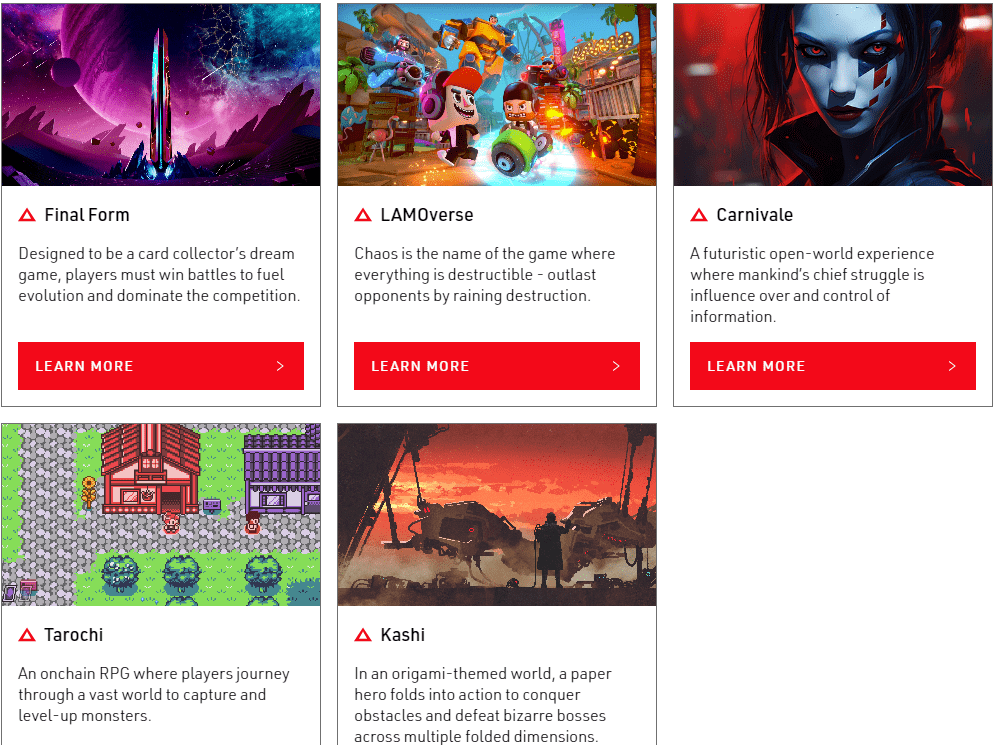해당 체인에서 출시 예정인 게임들인데 Final Form, LAM Overse,Carnivale,Tarochi,Kashi 이렇게 5개의 게임이 출시 예정입니다.