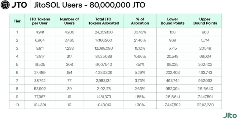 JitoSOL 사용자의 단기 투자 자격은 Jito 포인트 프로그램 순위에 따라 결정됩니다.100포인트 이상의 포인트를 보유한 JitoSOL 사용자만 에어드롭을 받을 수 있습니다.