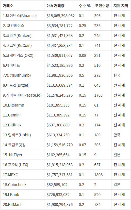 아래에서는 전세계의 브랜드가 알려진 거래소에 해당되는 이야기입니다. 코인 시장에는 가상 화폐 투자자를 위한 수백 개의 가상 화폐 거래소가 있으며 상품, 등록, 수수료 등의 면에서 서로 다릅니다.