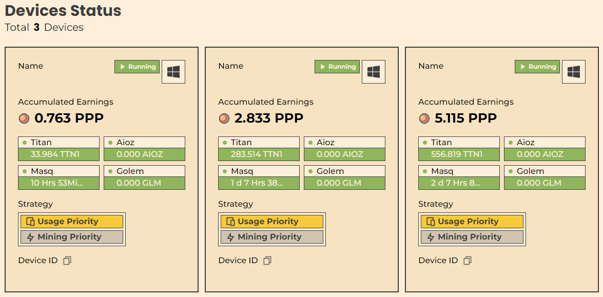 - ๋ช ๋ฒ์ ํด๋ฆญ๋ง์ผ๋ก ๋ผ์ดํธ ๋ ธ๋๋ฅผ ํตํด ์ฌ์ฉ์๋ ๊ฐ์ธ ์ฅ์น๋ฅผ ๋คํธ์ํฌ์ ์ฐ๊ฒฐํ๊ณ ์ด๋ฅผ ์ฌ๋ฌ DePIN ๋คํธ์ํฌ์ ๋ ธ๋๋ก ๋ณํํ์ฌ ์ง๊ณ ๋ง์ด๋์ ์ํํจ์ผ๋ก์จ ์ต์ ํ๋ ๋ง์ด๋ ์ ๋ต์ผ๋ก ์์ต์ ๊ทน๋ํํ ์ ์์ต๋๋ค.