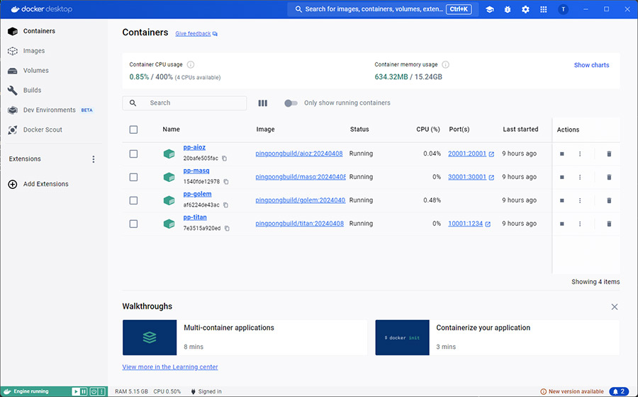 ์ค์น๊ฐ ๋๋๋ฉด Docker์ ์ฑ ํด๋ผ์ด์ธํธ๋ฅผ ๋ชจ๋ ์คํํ๊ณ ์ ์ ๊ธฐ๋ค๋ ค์ฃผ์ธ์.