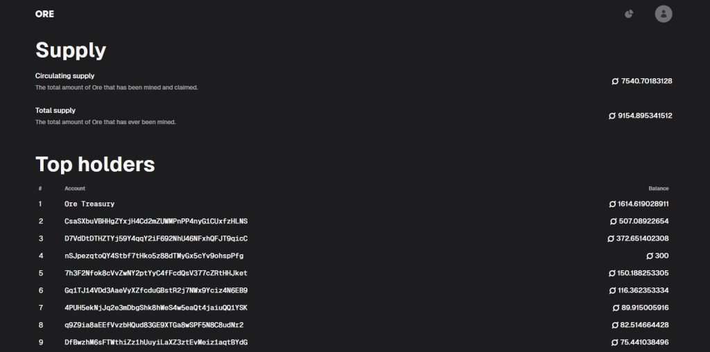 Ore는 채굴 이면의 핵심 개념인 채굴자들이 암호화폐를 벌면서 네트워크 보안을 위해 암호화 퍼즐을 해결하고 솔라나 블록체인에 자체 토큰을 배포하는 데 이를 적용했습니다.