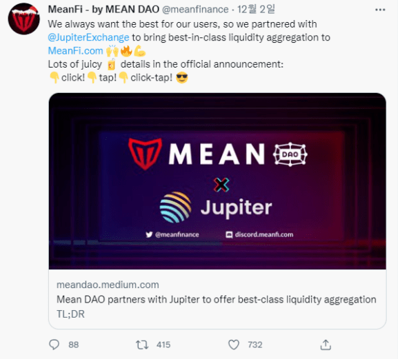 솔라나 생태계에서 블록체인의 강점을 활용하여 주피터는 다양한 애플리케이션, dApp, 유동성 소스, 토큰 목록 등에 대한 다양한 교환 방법을 제공합니다.