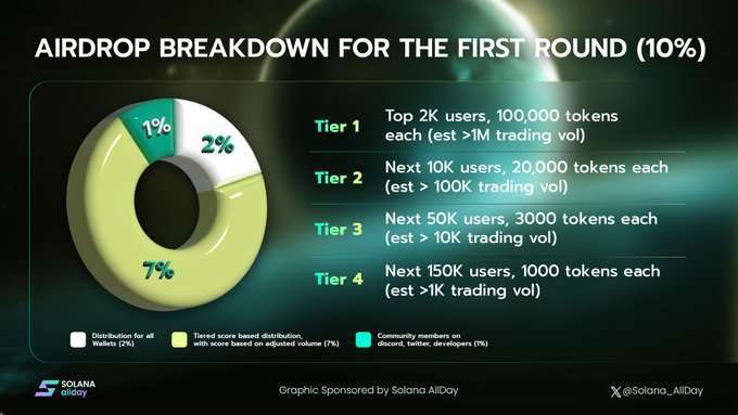 - 7%의 토큰은 “조정된 볼륨을 기반으로 한 점수와 함께 계층화된 점수를 기반으로 한 할당”입니다.