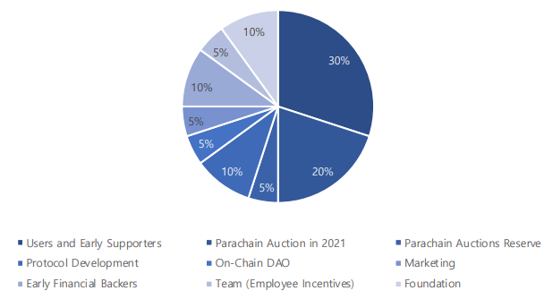 2023년 4월 현재, 총 발행량은 7,000,000,000 $ASTR이고 유통량은 4,487,130,325 $ASTR입니다. ASTR 코인 배정율은 다음과 같습니다.